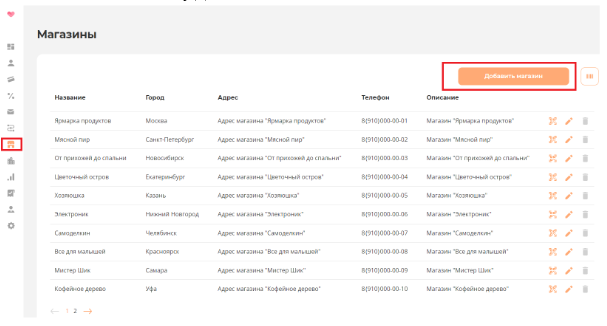 Для добавления магазина в систему лояльности, необходимо перейти в раздел Магазины и нажать кнопку Добавить магазин